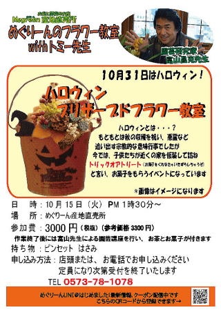 ■ 10月 15日(火)めぐりーんのフラワー教室 with トミー